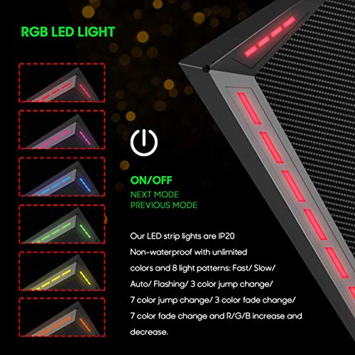 - 🎮【RGB LED Light Armor Covers】– Racing Gaming Armor LED covers with unlimited colors and 8 light patterns: Fast/ Slow/ Auto/ Flashing/ 3 color jump change/ 7 color jump change/ 3 color fade change/ 7 color fade change. 1 second bring you into game mood.