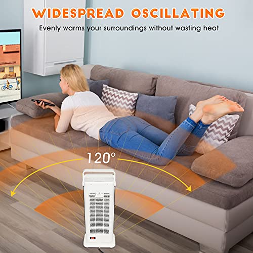 - ☀【Widespread Oscillation & Quiet】:The electric space heater with 120°wide oscillating rotation can be more effective and direct to evenly heat your surroundings to obtain the best comfort. Due to the ultra-quiet design, you can hardly feel the operation of the room heater during use, and you will not be disturbed during sleep.