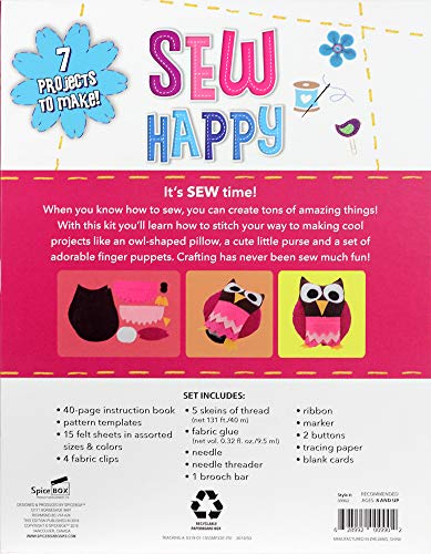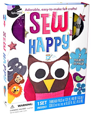 Details: SpiceBox Make & Play Sew Happy Adorable, fun-to-sew crafts! Sew Happy comes with everything you need to make cute and simple projects. Make an owl pillow, fun finger puppets, sweet birdie clips, pretty flower brooches and more!