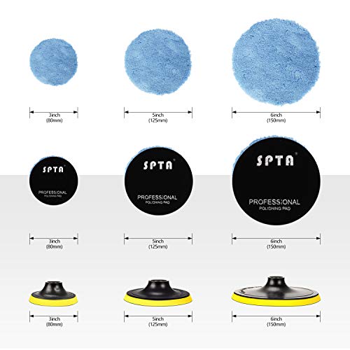 - šćGOOD TO USEćSPTA mirofiber pads can cut through moderate surface defects in OEM paint without leaving behind further swirls. Ideal for removing common below surface defects like scratches, etchings, stains, swirls and hologram while enhancing depth of shine.