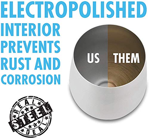 - ELECTROPOLISHED INTERIOR: Unlike other portable wine glasses, our 4 pack of stemless stainless steel wine glasses has a electropolished interior to guard against corrosion. Rust in your wine, gross! Make these virtually unbreakable no stem glasses your go-to glassware for outdoor events and family gatherings