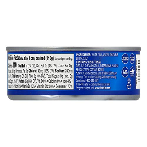 - ADD VARIETY TO YOUR DIET: Tuna is a wholesome choice for a snack or meal. StarKist Low Sodium Solid White Albacore Tuna in Water is a great and easy way to add seafood to your diet. Plus, it’s wild caught, dolphin safe and soy free and gluten free!