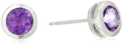 • Stud earrings featuring round cut 5mm genuine African amethyst stones bezel set in high polished sterling silver