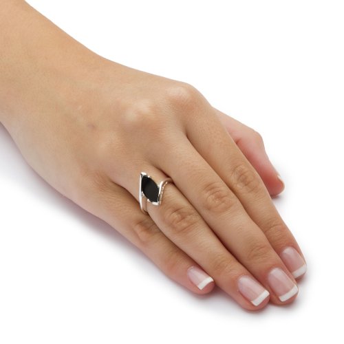 Details: The elegant profile of this unique ring lends a regal touch your wardrobe. The marquise-cut onyx stone sits just askew in an intricate bed of curved metal. Sterling silver with rhodium finish. Sizes 5-10. - 8384