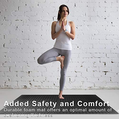 - ☀【Durable&Non-slip】Non-skid textured and shock- absorbing surface provides a soft feeling when exercise on, best for comfortable workout area – a combination of high density EVA foam mat & exercise mat for excellent support and cushion