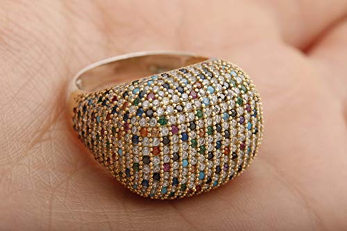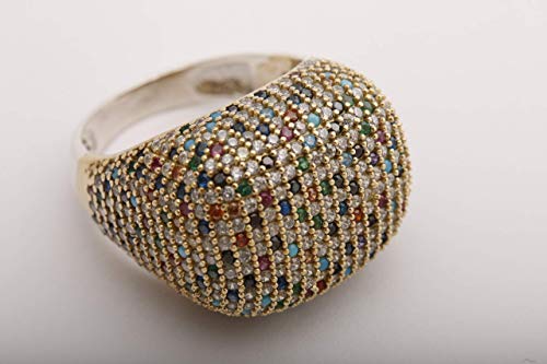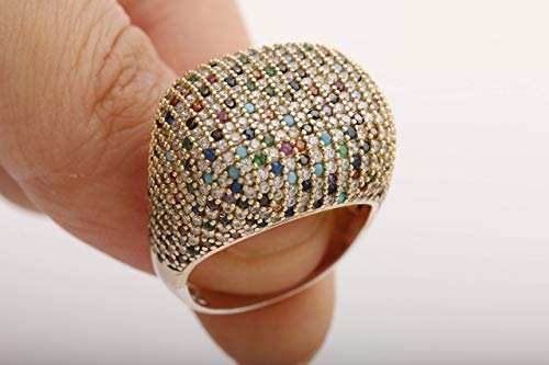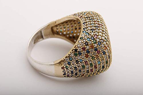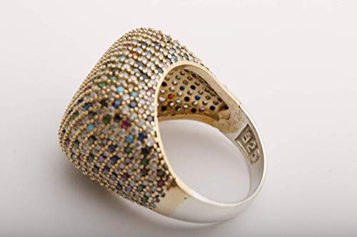 Details: The material is 925 Sterling Silver. The stone is Multistone. The Ring weights 7.9 grams. 0.69 inches head wide.