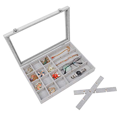 - ❤High Quality: Constructed with durable composite board wrapped in elegant ice velvet fabric from top to bottom, a glass lid to protect your jewelries and contents , and adjustable compartment dividers can store many different sizes jewelry