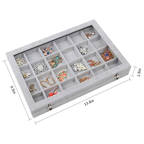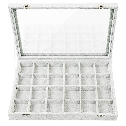 - ❤Perfect Design:This 24 Grids ice velvet jewelry box tray can storage earrings, necklaces, bracelets, cufflinks, rings, brooches, pins, watches, and more. It's perfectly placed in a drawer doesn't take up any space, but it makes your desk more beautiful and your mood more beautiful