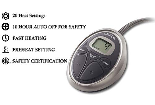 - LCD Backlit Digital Control with 20 Personalized Heat Settings, Auto-Off and Preheat Features
