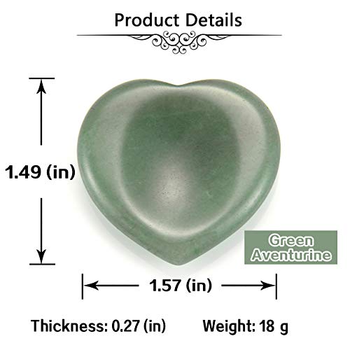 - Healing Crystal Green Aventurine Heart Love Thumb Worry Stone Pocket Palm Gemstones for Anxiety Therapy Geometry Chakra Reiki Balancing. Size: Length: 38mm, Width: 40mm, Thickness: 7mm. Stone Weight: 0.63 ounces.
