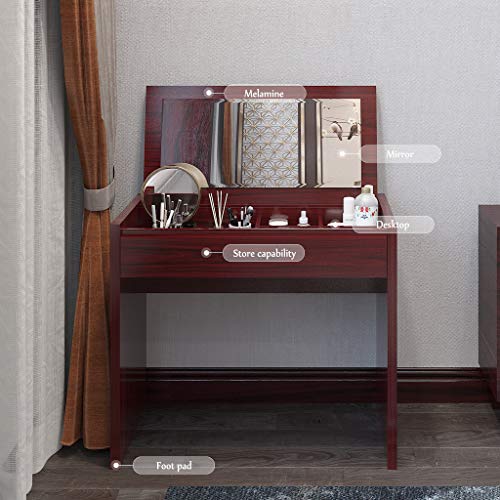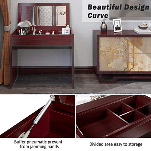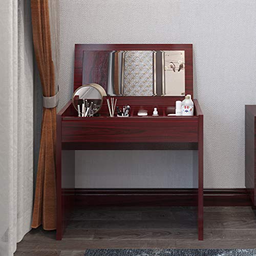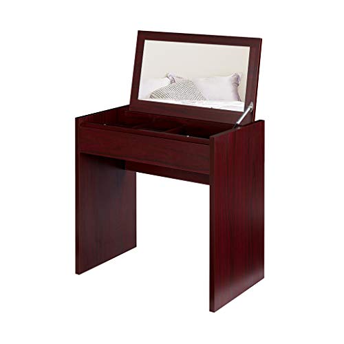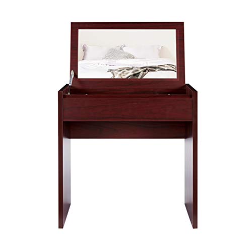 - [Functional Design] Flip top mirror design makes it convenient to be used as a makeup table or an ordinary writing table. When you lifte mirror up, the makeup table serves as a vanity table with super functional storage organizer, when you put down it in a second, it's becomes a gorgeous desk.