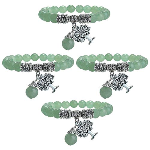 - Size(Approx): total length: 7"(18cm); round bead: 0.3"(8mm); alloy tree of life pendant: 0.8"(21mm); crystal bead pendant: 0.4"(10mm) material: green aventurine, alloy, elastic cord; quantity: 1PC(package comes with a drawstring burlap pouch as gift)