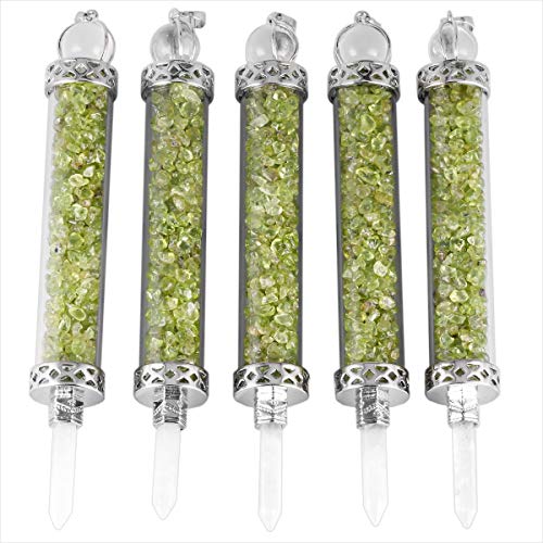 - Orgone Crystal Wand Pendant: the pendant is consisted with rock quartz cap bead, hexagonal pointed crystal and chip stone bottle, unique long wand pendant design fits for women and men.