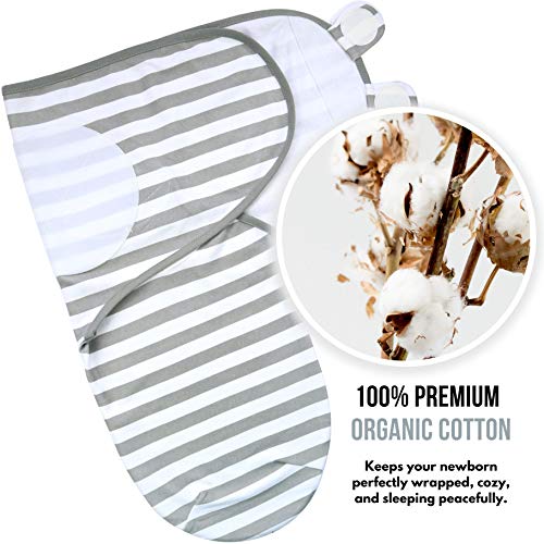 - SOFT, LIGHTWEIGHT AND BREATHABLE, 100% PREMIUM ORGANIC COTTON - Our swaddle wraps are made of baby-safe, lightweight and breathable natural cotton to keep your newborn perfectly wrapped, cozy, and sleeping peacefully. The lightweight fabric prevents overheating and keeps your newborn comfortable.