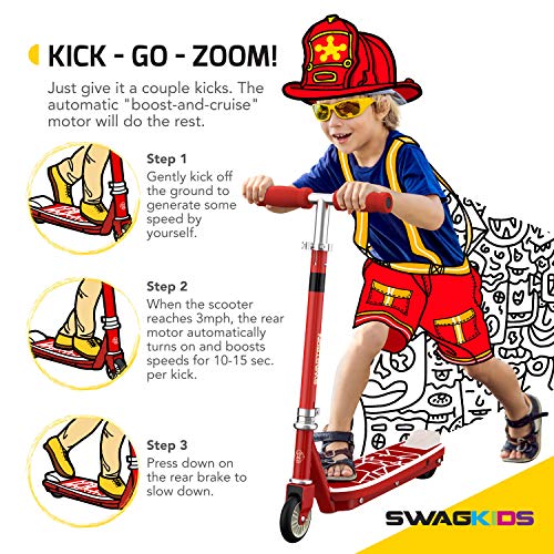 - KICK-START SPEED BOOST — Ride the SK1 like a kick scooter until you reach 3 MPH. The kick-to-start motor will kick in for an automatic speed boost up to 6.2 MPH.