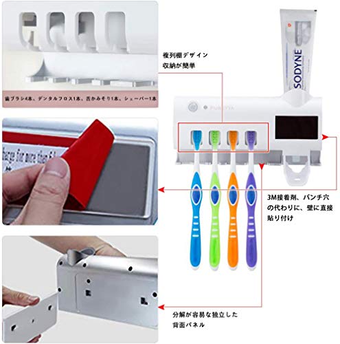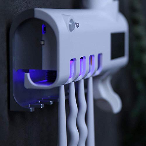 - Multifunctional toothbrush shelf: can accommodate 1 toothpaste, 1 razor, 4 toothbrushes, very suitable for home use. Built-in ultraviolet (UV), the sterilization rate is as high as 99%. The automatic toothpaste dispenser squeezes a certain amount of toothpaste, and children are happy to brush their teeth without help.