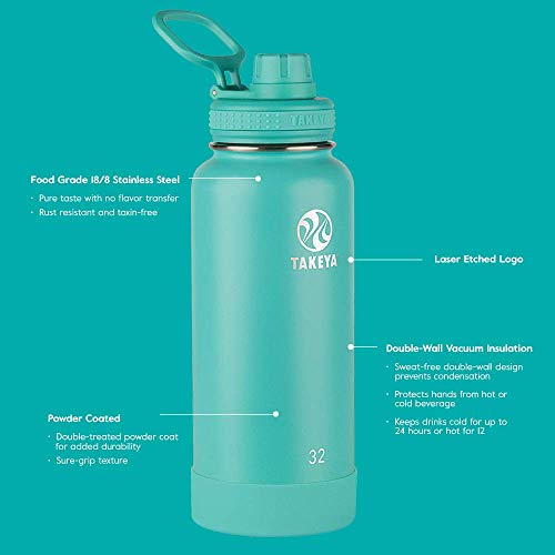 - Actives insulated water bottle: Takeya actives stainless steel water bottle is a sleek and rugged sports water bottle with a powder coated finish. The 18oz water bottle’s unique double-wall vacuum insulation keeps drinks hot (12 hrs.) and cold (24 hrs.).