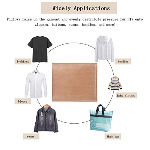 - Eliminates the indentations: Heat resistance pillows help to lift the print area of your substrate, can make the surface smooth and even, ensure pressure evenly distributed. Our heat pressing Teflon pillow can be used for pressing HTV onto bulky garments which have thick seams, collars, buttons, mesh or zippers