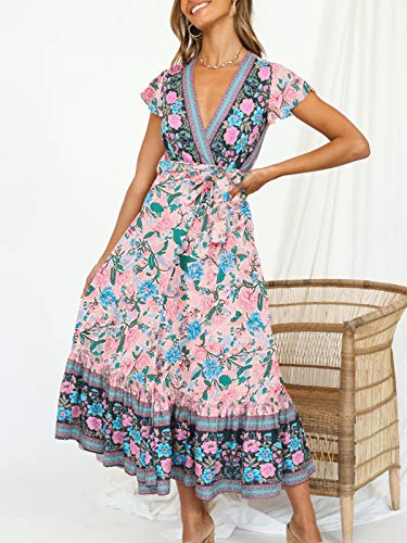 - Style: Boho vintage floral printed dress, bohemian wrap dresses, beach maxi dress, summer casual fashion dresses, elegant and beautiful