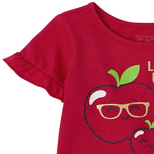 - Pack of 3 tops includes: 1 striped top with empire waist and flowy hem; 1 apple print top with empire waist and flowy hem; 1 top with 'love my family' apple graphic design and ruffle sleeves