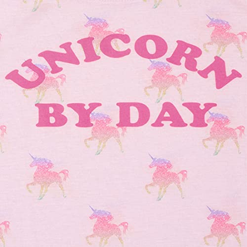 - 1 long sleeve top with 'unicorn by day' and unicorn print; styled with crew neck