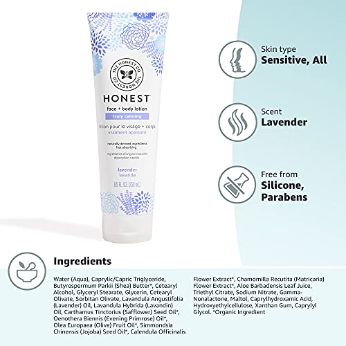 Details: Welcome to fresh-faced skincare products, zero phthalates. Honest Ultra Calming Dreamy Lavender Face + Body Lotion is natural, pure, gentle, and specifically formulated for sensitive skin. Our plant-based, hypoallergenic body and face lotion hydrates and moisturizes even the most sensitive skin and is gentle enough for the whole family. Imagine that—personal care made for you and your little ones, too. Our Honest Face + Body Lotion is made with safe, gentle, and hypoallergenic ingredients, and a dash of love. Our baby lotion has everything you want, and nothing you don’t. At Honest, we’re on a mission to empower people to live happy, healthy lives, and giving back drives who we are and what we do. It is in our brand DNA and informs every aspect of our business and operations. We believe that it is our responsibility to do our part to help create a healthy and sustainable future for all. This deep sense of purpose is passionately demonstrated in our actions and service to our families, our planet, and our communities as we strive to create long-term value and positive social impact for all. Trusted. Gentle. Clean. Love, Honest.