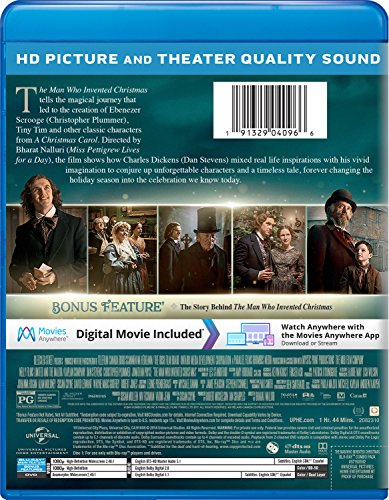 Details: The Man Who Invented Christmas tells the magical journey that led to the creation of Ebenezer Scrooge (Christopher Plummer), Tiny Tim and other classic characters from A Christmas Carol. Directed by Bharat Nalluri (Miss Pettigrew Lives for a Day), the film shows how Charles Dickens (Dan Stevens) mixed real life inspirations with his vivid imagination to conjure up unforgettable characters and a timeless tale, forever changing the holiday season into the celebration we know today. Bonus Content: Includes a digital copy of The Man Who Invented Christmas (Subject to expiration. Go to NBCUCodes.com for details.) The Story Behind The Man Who Invented Christmas