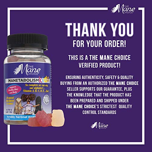 Details: Who Is The Mane Choice? The Mane Choice is an electrifying revolution in the hair care industry created by a Physician and Registered Nurse DUO. We built our company on the foundation of research and the beauty, health, science approach: enhance beauty and health with a scientific background. We are a premium multi-cultural healthy hair growth and retention company and we attentively and thoroughly listen to the voices of our consumers to create a solution to their hair problems. We offer a comprehensive methodology to achieving beautiful, healthy hair, by infusing our hair care products with vitamins and essential nutrients such as Biotin, Vitamin A, B, C, D, E and more. We believe in maintaining an intimate relationship with our team, our customers, and the consumers. We invest in our customers by providing them with scientific data about their hair and product needs via social media, web, and live events. Say YES to healthy hair for the little ones with Manetabolism KIDS Manetabolism KIDS is a tasty all-natural, fruit flavored, gluten and dairy free healthy hair growth supplement. It aids in a comprehensive approach to growing healthy hair and keeping the little ones healthy at the same time. Everyone, including our children, need essential vitamins and nutrients to keep our bodies and hair healthy. Our complete children gummies promote healthy hair, nails, and skin by supplying nourishment to the body cells and by directly targeting hair follicles, nail beds, and skin layers. In addition, it also helps to strengthen the immune system. DIRECTIONS: Children 2 to 3 years of age fully chew one gummy daily. Children 4 years of age and above fully chew two gummies daily.