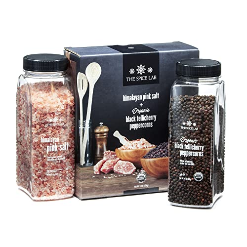 - THE SPICE LAB VALUES: We source the highest quality spices, hire a diverse workforce and cultivate a supportive and safe work environment that reflects our brand. This salt pepper combo consists of organic coarse Himalayan Pink Salt and whole black Tellicherry peppercorns: pure, simple and delicious. Both were packed in premium packaging for spices in our SQF-certified facility in the USA.