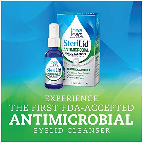 Details: Did you know that bacteria on eyelids can intensify dry eye symptoms? Wipe away those chronic symptoms with TheraTears SteriLid Antimicrobial that kills 99.9% of bacteria* while gently cleansing your eyelids. Sterilid Antimicrobial spray with hypochlorous acis is a professional formula for superior daily eyelid and eyelash cleansing. Our antimicrobial eyelid cleanser kills 99.9% of bacteria* thanks to the hypochlorous acid and the unique pH balanced formula. This formula is gentle on eyelids, requires no rinsing and is soap free. Sterlid Antimicrobial is a convenient and affordable over-the-counter solution that is as effective as a prescription. Available in 2 FL OZ spray bottles. *Antimicrobial Ingredients- Water, PEG-80 Sorbitan Laurate, Sodium Trideceth Sulfate, Cocamidopropyl Betaine, Sodium Lauroamphoacetate, PEG-150 Distearate, Sodium Laureth-13 Carboxylate, Linalool, Sodium Chloride, Sodium Piperazinoethyl Acetate Ethylsulfonate, Boric Acid, Sodium Perborate, Panthenol, Allantoin, Cocamidopropyl PG Dimonium Chloride, Melaleuca Alternifolia (Tea Tree Oil) Leaf Oil, Trisodium EDTA, Etidronic Acid, Citric Acid, Sodium Hydroxide. Directions- Shake well before use. To pump, tilt unit towards nozzle and press completely and crisply to ensure that you create a foam with the pump dispenser. 1. Clean fingertips with SteriLid prior to use, rinse.2. Pump SteriLid foam onto clean fingertips. 3. Close eyes, and gently massage foam into lids and lashes. Avoid touching eyes directly. Leave in place for 60 seconds for maximum effectiveness. 4. Rinse with water.That's it. Lid hygiene to maintain eyelid health has never been easier. And SteriLid not only cleanses the eyelids and eyelashes, but also conditions the delicate skin around your eyes with its hypoallergenic, pH-matched-to-skin formula.Use twice a day or as directed.