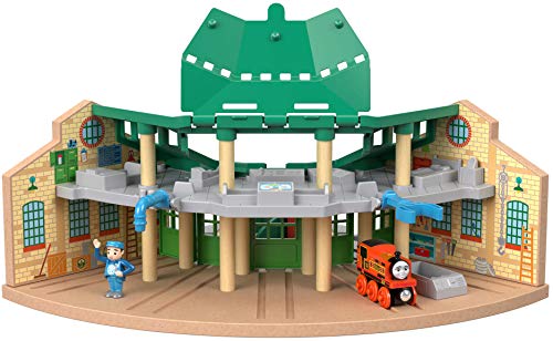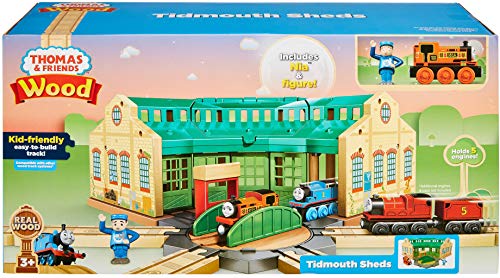 Details: Featuring two sides of play, two levels, a spinning turntable and space for five Thomas & Friends Wood toy trains, Tidmouth Sheds brings one of the show's most popular locations to life. For even more ways to play, it includes the newest member of the Steam Team, Nia, and a poseable figure. The Steam Team always keeps busy on the Island of Sodor, but this is the perfect place for active engines to take a break or spend the night. Kids can connect Tidmouth Sheds to Thomas & Friends Wood track (sold separately and subject to availability) for a complete railway experience. When they open the bay doors, roll a train onto the turntable, and spin it to choose a direction, they're engaging in play that stimulates their motor skills, thinking skills and imaginations. On the other side of the playset, children can use the included figure to create stories about the busy day-to-day life at this bustling train depot. The roof can also open and close for quick, easy access to the upper level. With so many ways to play, kids will love having Tidmouth Sheds at the heart of their Thomas & Friends Wood railway.
