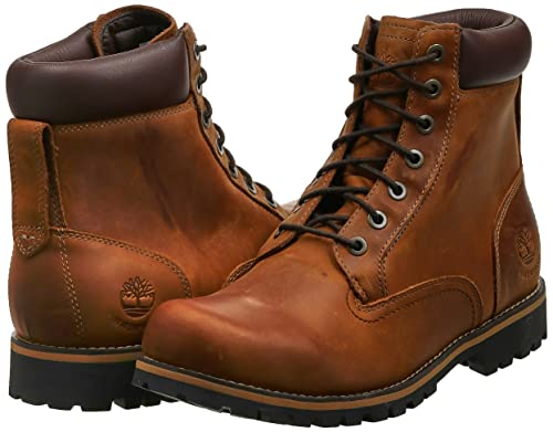 Details: Product Description Uppers made with 100% premium waterproof leather from an LWG Silver-rated tannery. Waterproof membrane. Padded collar. Shaft measures approximately 5.5" from arch. 100% PET laces. Removable anti-fatigue footbed. Rubber lug outsoles are made with up to 34% recycled rubber. Imported. Amazon.com The Rugged Lace-up Boot from Timberland not only is a classic beauty but also exemplifies green design at its finest! The boot features a comfortable lining made of 100% recycled PET fabric, a recycled rubber outsole that provides excellent traction, and even organic cotton laces that are made from start to finish chemically free and without toxins in the production. So, look great, walk comfortably, and feel good all at the same time!