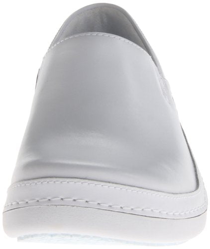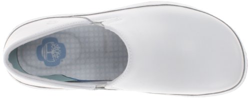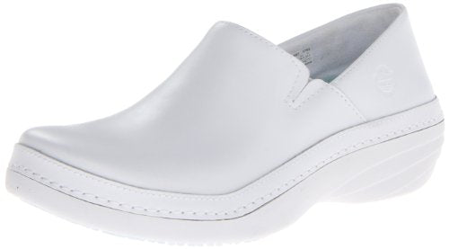 - Slip-on work clog featuring concealed goring insets and scotchgard protector for stain resistance