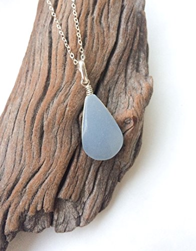 Details: Natural Angelite/Celestite and sterling silver teardrop pendant