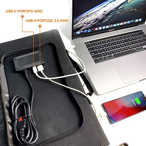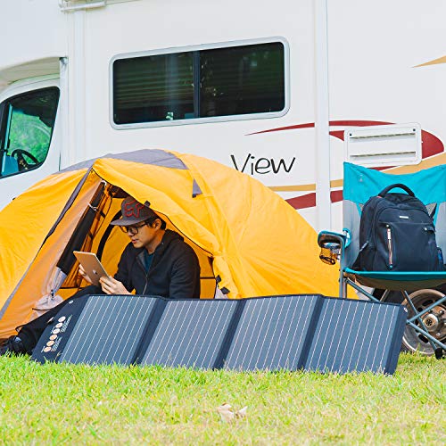 - 【Portable Foldable Waterproof】:The solar panel Is with ECTFE laminated, ultra-light, easy to take anywhere. This solar panel only weighs 10.25lb (4.65kg), folding dimension:20.47*14.57*2.17inch (52*37*5.5cm), making it easier to transport, hang, and remove. The solar panel is water-resistant to endure all weather conditions, ideal for outdoor activities. Please NOTE: The junction box is not waterproof and please keep it dry.