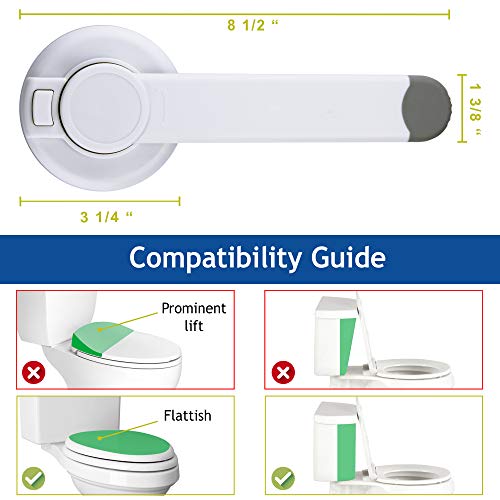 - GREAT DESIGN FOR EASY ONE-HANDED USE: Boasting a universal design which fits most standard toilet, our toilet seat lock allows for sanitary and convenient one-handed operation. Simply push and rotate to open, then push button to close!