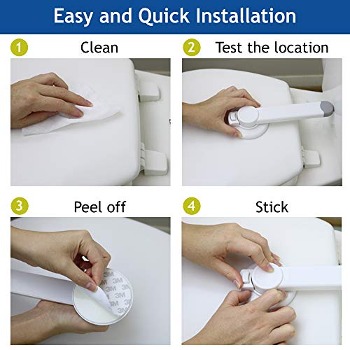 - HASSLE FREE INSTALLATION: No tools, screws or drilling are required to install our durable, top quality toilet lock to keep your little one protected. The strong 3M adhesive allows you to install this safety lock within seconds with no hassle at all.