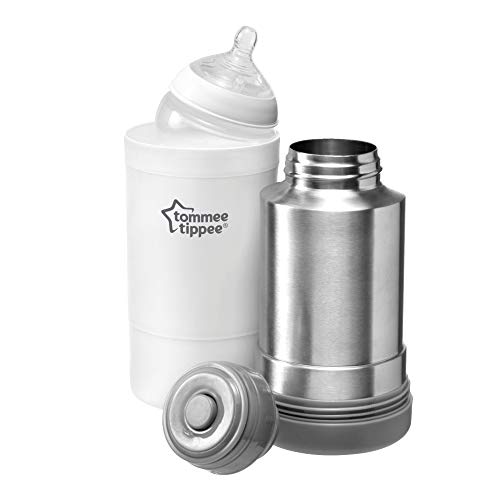 Details: Tommee Tippee's Travel Baby Bottle and Food Warmer easily heats baby's meal when you are out and about. Works with breastmilk, formula or baby food. Portable and convenient, the thermal travel baby bottle warmer stores hot water, for warming on the go - no external warming source needed. The securely fastened lid protects from leaks and spills, and is BPA and phthalate free. The food and milk warmer's compact design should fit in your baby’s diaper bag, so it is ready to go when you need it. Helping you #ParentOn