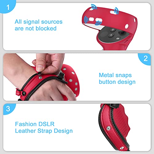 - 🎮Easy to Install and Adjust: The entire controller grip cover is a whole and allows you to easily install it into your controller. It has multiple adjustable nodes, and is suitable for adults and adolescents of all ages, you no longer need to worry about falling off due to size issues. The lychee pattern PU leather wristband and handle strap bring double insurance to your touch controller grip.