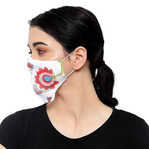 - Pack of 3. Fine Cotton Face Masks in classic and modern Floral patterns in a Cup Style. Light cotton fabric for breathability, specially in summer. Vibrant Floral print in red and white.