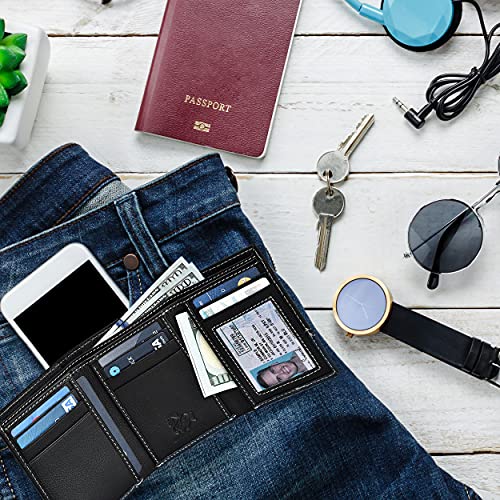 - Material: Made of 100% genuine leather, our trifold leather wallet is sturdy, long-lasting and durable. Handcrafted by professional designers, our leather wallets are designed for men to carry cash, coins, and other accessories in one place.