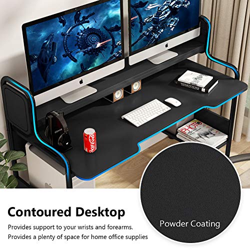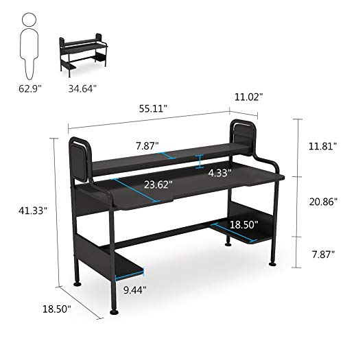 - SPACIOUS DESKTOP: Get to work in modern style with this large desk, featuring a 55” x 23.6” contoured table top, it provides plenty of space for your keyboard, mouse, speakers, accessories and more.