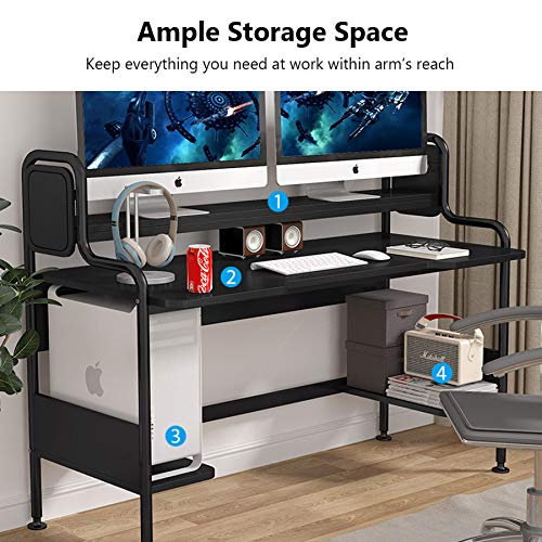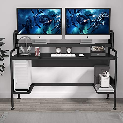 Details: Transform your work area with this Tribesigns large computer desk with hutch and storage shelves, It will effortlessly bring a style and organizational appeal to your work space. With super strong steel frame support and beautifully matte finished tabletop, it retains its original sheen and look for many years to come.