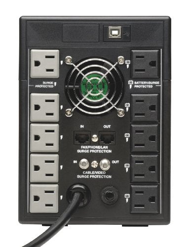 Details: Tripp Lite OMNI1500LCDT line-interactive tower UPS system offers voltage regulation, surge suppression and long-lasting battery support for personal computers, network workstations, Home entertainment systems and media centers. Internal UPS circuits support entry-level PCs or individual VCR/DVR components during power failures. Prevents data loss, viewing interruptions, lost recordings and loss of component programming. Automatic voltage regulation (AVR) circuits continuously regulate brownouts and overvoltage from 92V to 150V back to usable levels, All while maintaining a full battery charge. Offers Complete power protection in an attractive all-black cabinet design. Includes 10 built-in outlets, 5 with full battery backup and surge suppression for vital system components and another 5 with surge-suppression only for accessories not requiring battery support. Built-in USB port and included cable enables optional unattended system shutdown without data loss in case of Extended power failure. Poweralert software is available via free download. Hid-compliant USB interface also enables integration with built-in power management and auto shutdown features of Windows and Mac OS X. Built-in surge data line surge suppression jacks protect equipment with single-line dialup/DSL or network Ethernet connection. Built-in audible alarm and large LCD front panel display offers easy to read icon-based status indicators and detailed numeric data regarding input voltage, output voltage, frequency, load percentage, load watts, battery voltage and runtime in minutes.1500VA/810W power-handling capacity supports entry-level PCs, Home entertainment systems, network workstations and audio/video components.