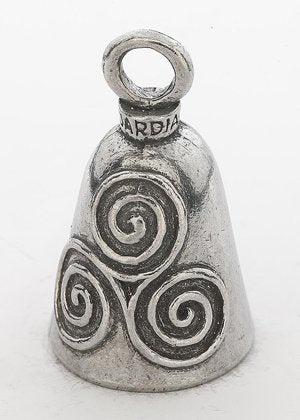 Details: TRISKELE (TRIBAL SPIRAL) GUARDIAN BELL WITH HANGER Includes guardian bell HANGER valued at $9.99 Lead free Pewter bell has strong jump ring to withstand long rides. All Guardian Bells come with a key ring on top and a black velvet pouch with the legend of the bell inside. Legend has it that Evil Road Spirits have been latching themselves on to motorcycles for as long as there have been bikes on the road. These Evil Road Spirits are responsible for mechanical problems and bad luck along a journey. Legend goes on to say that by attaching a small bell onto your bike, the Evil Road Spirits will become trapped inside the bell where the constant ringing drives them insane, making them lose their grip until they fall to the ground – ever wonder where potholes come from? Legend also has it that the mystery of the Guardian Bell carries twice as much power when it is purchased by a friend or loved one and given as a gift. Show someone how much you care. Offer them defense against the Evil Road Spirits! Give a Guardian Bell and share the legend of good luck it offers to a motorcycle and its rider!