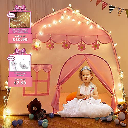 - BEAUTEFUL DESIGN: This TTLOJ play tent is 51 inches long, 40 inches wide, and 51 inches high. This fairy tale castle kids play house could make the children's princess dream come true and make them happy. The material is 420D Oxford fabric, which make the children's tent not noly sturdy but portable. ✿✿✿Some sellers may use the same picture as ours and sell them at lower prices, but their fabric is 210D Oxford or sth else.