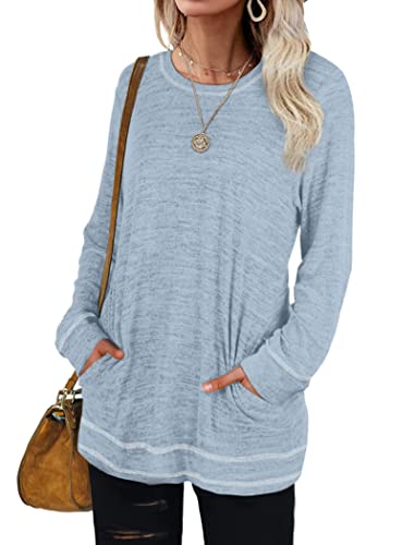 - 【Features】Classic crewneck sweatshirts, decorative stitching long sleeve shirts, lightweight sweaters with pockets, casual tunic tops for leggings. Simple and timeless design.