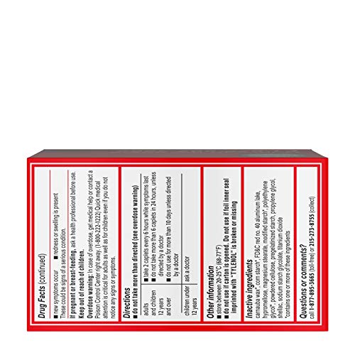 - 100-count of Tylenol Extra Strength Caplets with 500mg of acetaminophen to provide temporary relief of minor aches and pains and help reduce fever