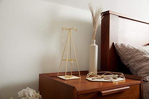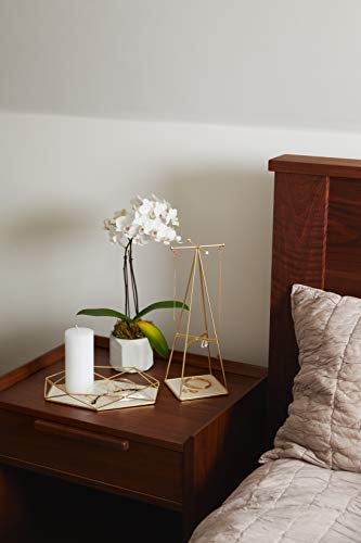 Details: We all have our favorite go-to accessories, but keeping track of them can be a challenge unless you have a designated spot for them. Display and organize your favorite pieces in style with this innovative piece from Umbra. Introducing the Prisma Jewelry Tray by Umbra Prisma Jewelry Tray is a stylish alternative and unexpected twist on your typical jewelry tray. Proudly display your accessories with this eye-catching piece, part of the innovative and beloved Prisma family of products. The sides of this tray are made of a geometric-shaped wire with a plated brass finish, creating an eye-catching look that will help show your jewelry off from all angles. The base of the tray has a sand-colored linen lining, which will prevent your jewelry from getting scratched. A felt liner on the bottom of the tray will ensure the surfaces you rest Prisma on will not scratch. Our Customers on Amazon are Loving the Prisma Jewelry Tray: “It holds more stuff than I imagined. Plus adding an air plant to it just takes it to the next level. So glad I got a beautiful tray on Amazon at a more reasonable price than you'd find with other products at other stores.” “Looks great on my vanity as perfume tray. Good quality and texture on the details even if you look very close.” “When it came in, I instantly saw that it looks just like the pictures if not better! Well made, sturdy and doesn’t take too much room. Holds my morning makeup essentials.” Details Prisma Jewelry Tray measures 11 x 7 ¼ x 1 ½ inches (28 x 18.4 x 3.8 cm). The plated brass has a matte finish and linen on the base of the tray is sand-colored. Start displaying and storing your jewelry in style by ordering the Prisma Jewelry Tray today. About Umbra: A global product design company providing original, modern, casual, functional, and affordable design for the home.