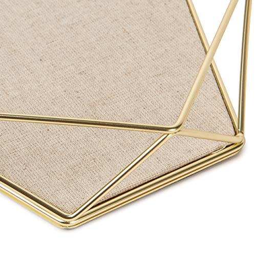 - PART OF THE PRISMA COLLECTION: The sides of this tray are made of a geometric-shaped, brass-plated wire, that shows off your jewelry from all angles. The base of the tray sports an elegant sand-colored linen lining.